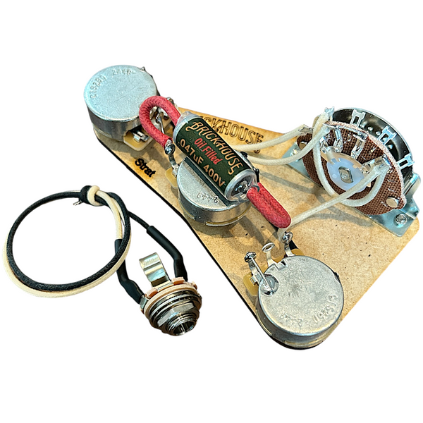 Upgrade your Stratocaster with professional-grade prewired electronics. Our Strat wiring harnesses feature premium components including bridge tone control for enhanced tonal versatility, making installation quick and hassle-free.
