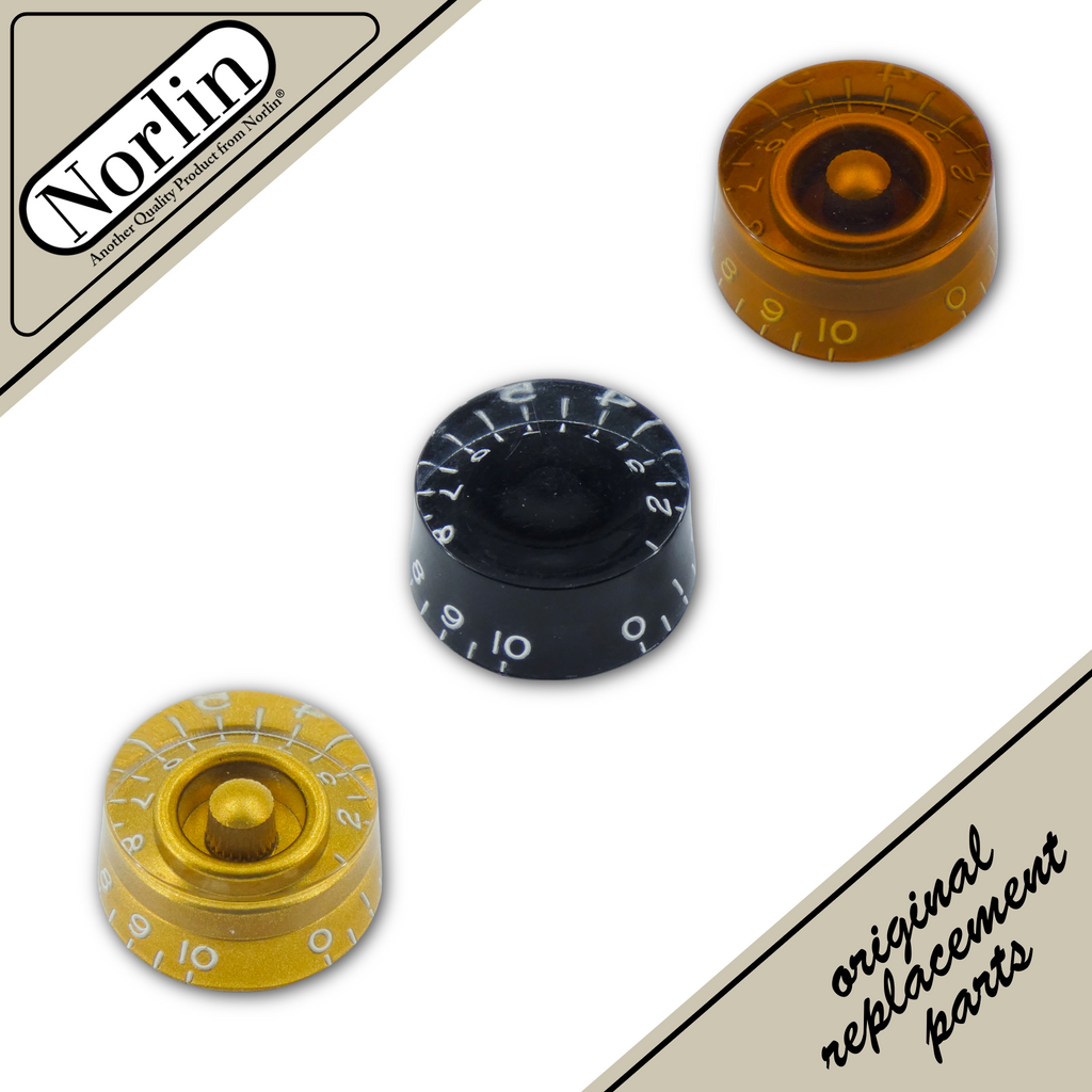 Individual Norlin® speed knob for Gibson® guitars. Compatible with CTS®, Bourns®, Seymour Duncan® and DiMarzio® potentiometers.