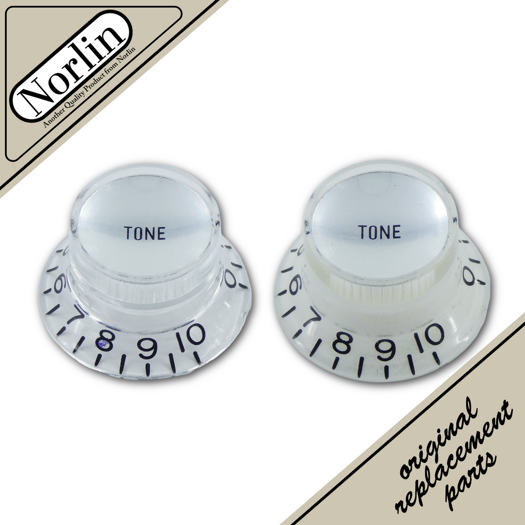 Individual Norlin® top hat reflector volume MOD knob for Gibson® guitars. Compatible with CTS®, Bourns®, Seymour Duncan®, Emerson® and DiMarzio® potentiometers.