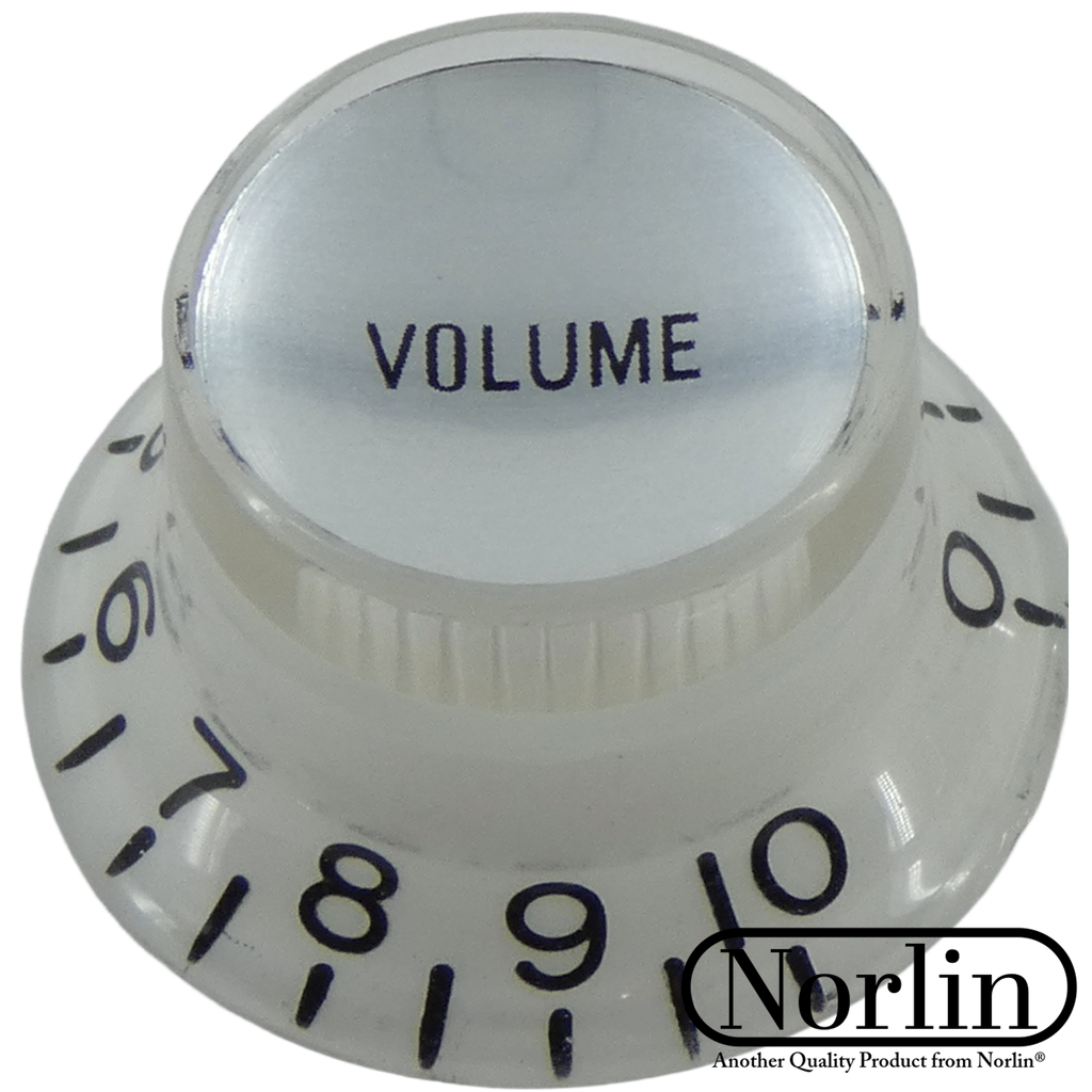 Individual Norlin® top hat reflector volume MOD knob for Gibson® guitars. Compatible with CTS®, Bourns®, Seymour Duncan®, Emerson® and DiMarzio® potentiometers.