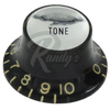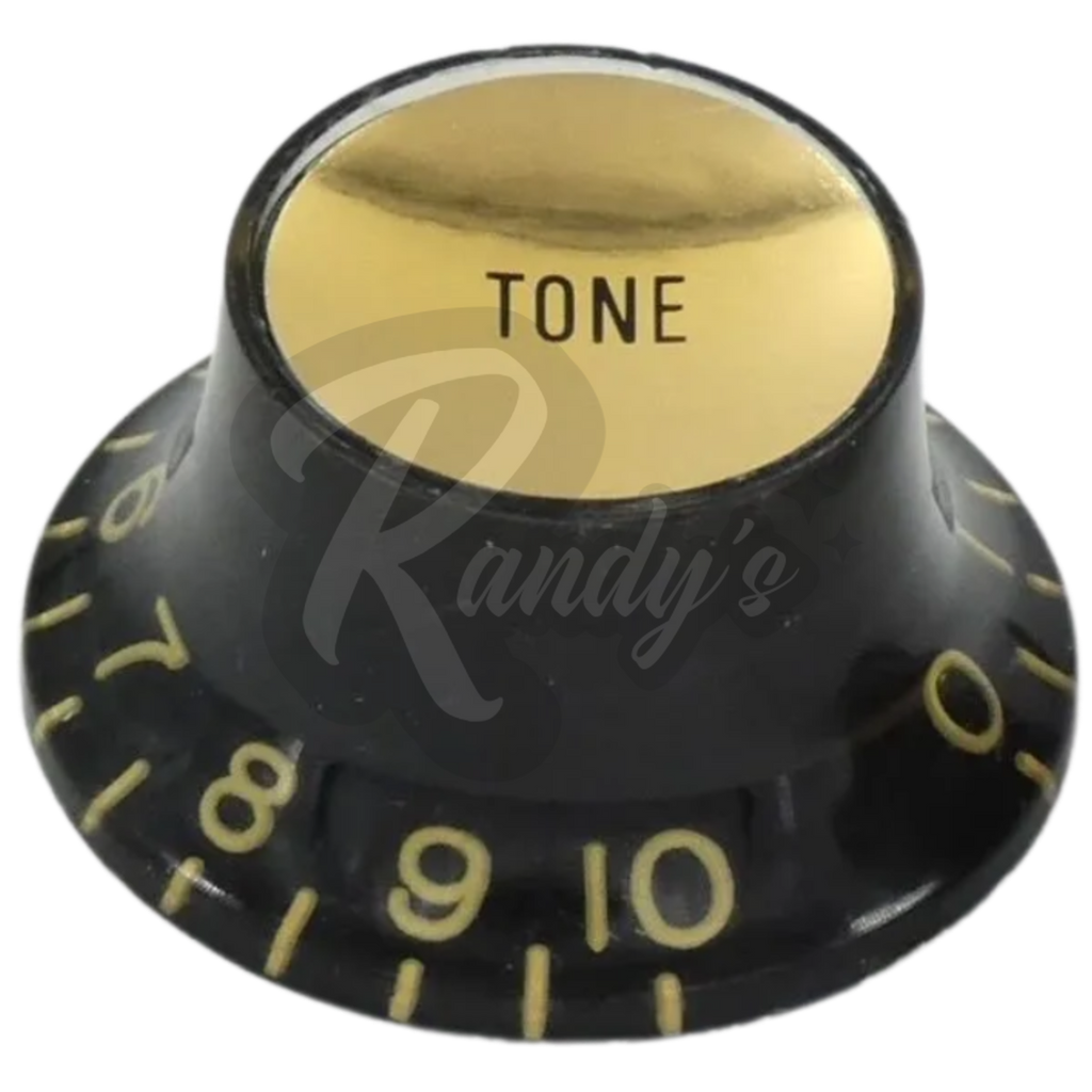 Individual historic "TONE" knob for electric guitar. To be used with fine knurled splined shaft pots. Embossed. CAB plastic. Fits Gibson®. Available in: